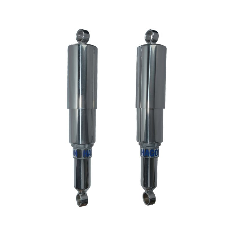 De Custom RVS series. De custom gepolijste rvs demper uitgevoerd met een smalle verchroomde topcover, een smalle verchroomde bottomcover en een instelbare 3-traps veervoorspanning.